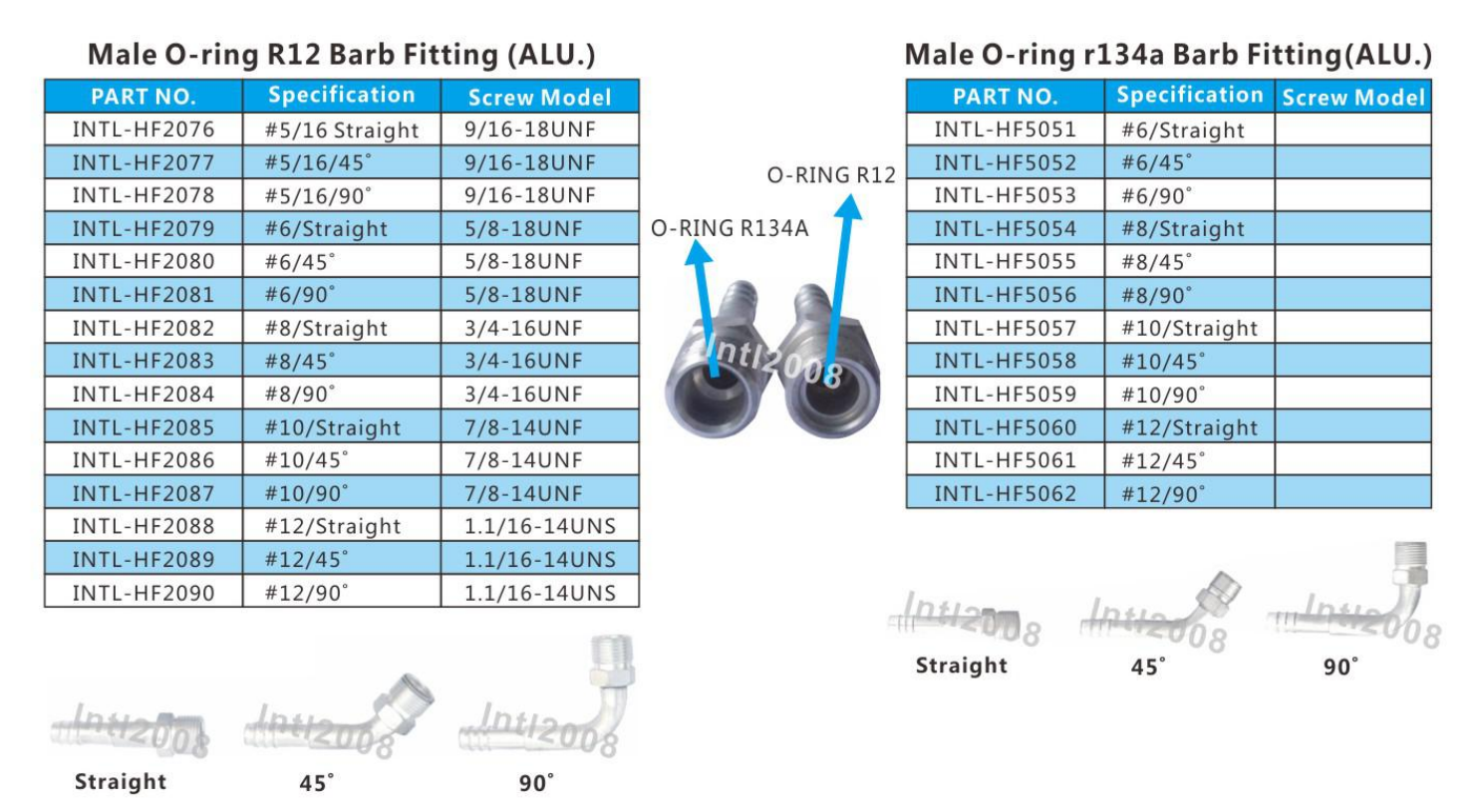 #12 R134a 45° Hose Barb Fittings Auminum Parts