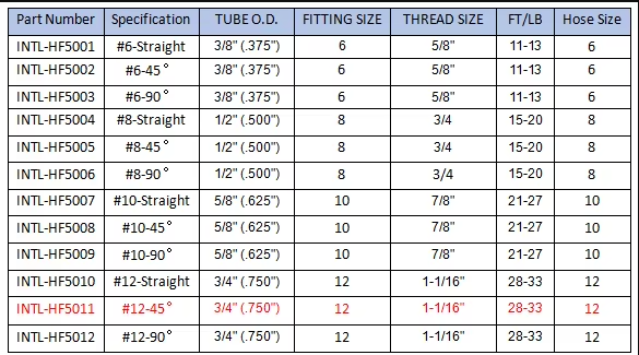 INTL-HF5011 #12 45 Degree Aluminum Barb Female O-ring R134A Fitting